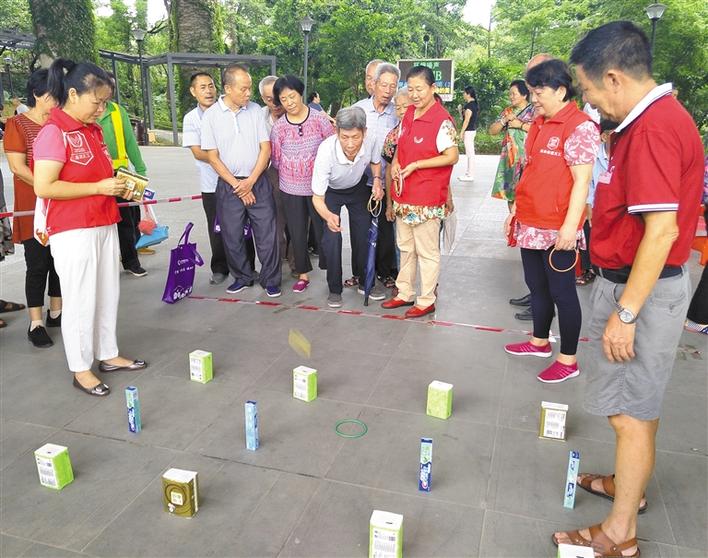 社区老人参加趣味运动会。