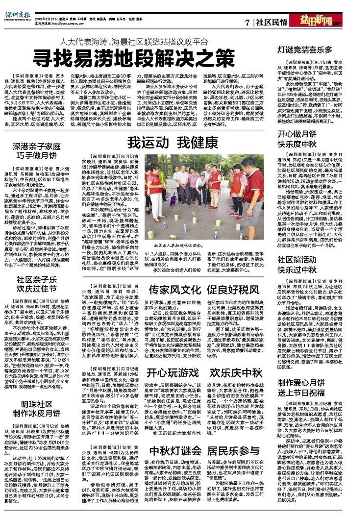【深圳商报讯】(见习记者 黎晓欣 通讯员 冯思韵)不经历风雨,怎么见彩虹?台风“山竹”严重破坏了美丽的家园,为了让“美丽梅沙”尽快恢复往日生机,日前,大梅沙社区开展了“庆中秋迎国庆”文艺汇