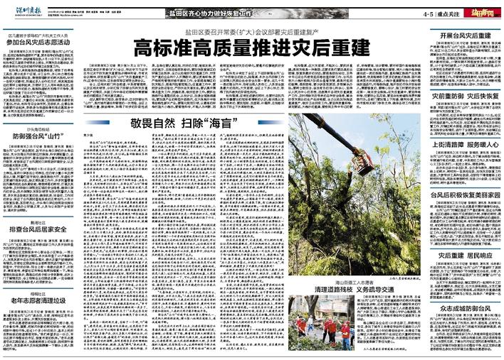 【深圳商报讯】(见习记者 黎晓欣 通讯员 温庆峰 严晓静)强台风“山竹”过后,东海社区开展灾后重建工作,社区30名工作人员全面排查台风影响情况,以及协调解决台风引起的各类纠纷。